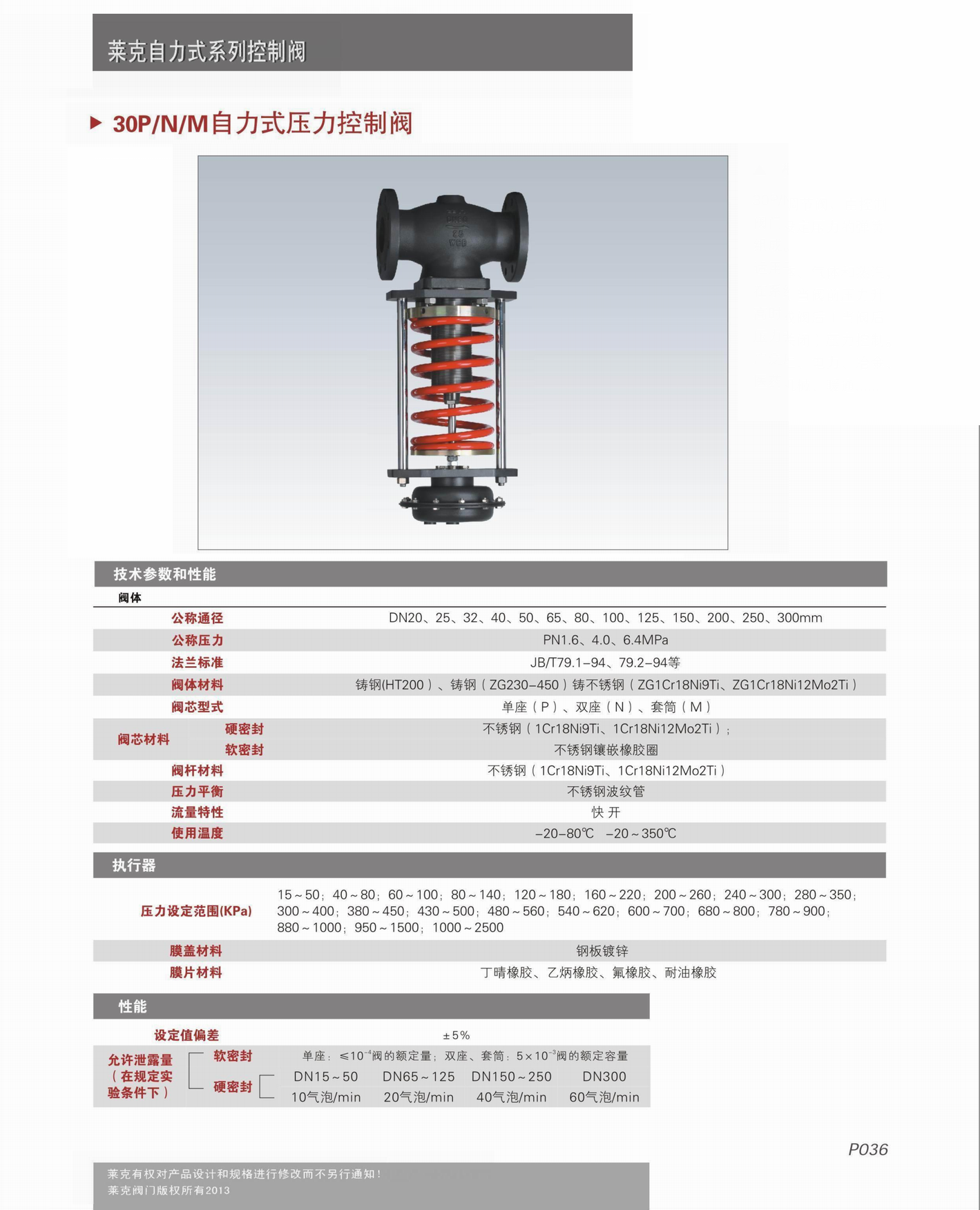 進口自力式調(diào)節(jié)閥由閥體、閥座、閥芯部件等組成,是一種無需外來能源而只依靠被調(diào)介質(zhì)自身的壓力變化進行自動調(diào)節(jié)壓力的節(jié)能型產(chǎn)品,可用于非腐蝕性的液體、氣體和蒸汽等介質(zhì)的壓力控制裝置。和ZZYP系列相比,控制彈簧由于離閥體較遠(yuǎn),不易受介質(zhì)溫度而影響,以及更易于更換或調(diào)整彈簧的特點。因此自力式壓力調(diào)節(jié)閥廣泛用于石油、化工、冶金、輕工等工業(yè)部門及城市供熱、供暖系統(tǒng)。自力式壓力調(diào)節(jié)閥系列產(chǎn)品公稱壓力PN16、40,公稱通徑范圍20~300mm,使用溫度≤350℃。多種多樣的品種可供選擇。比老型式有更大壓差范圍。